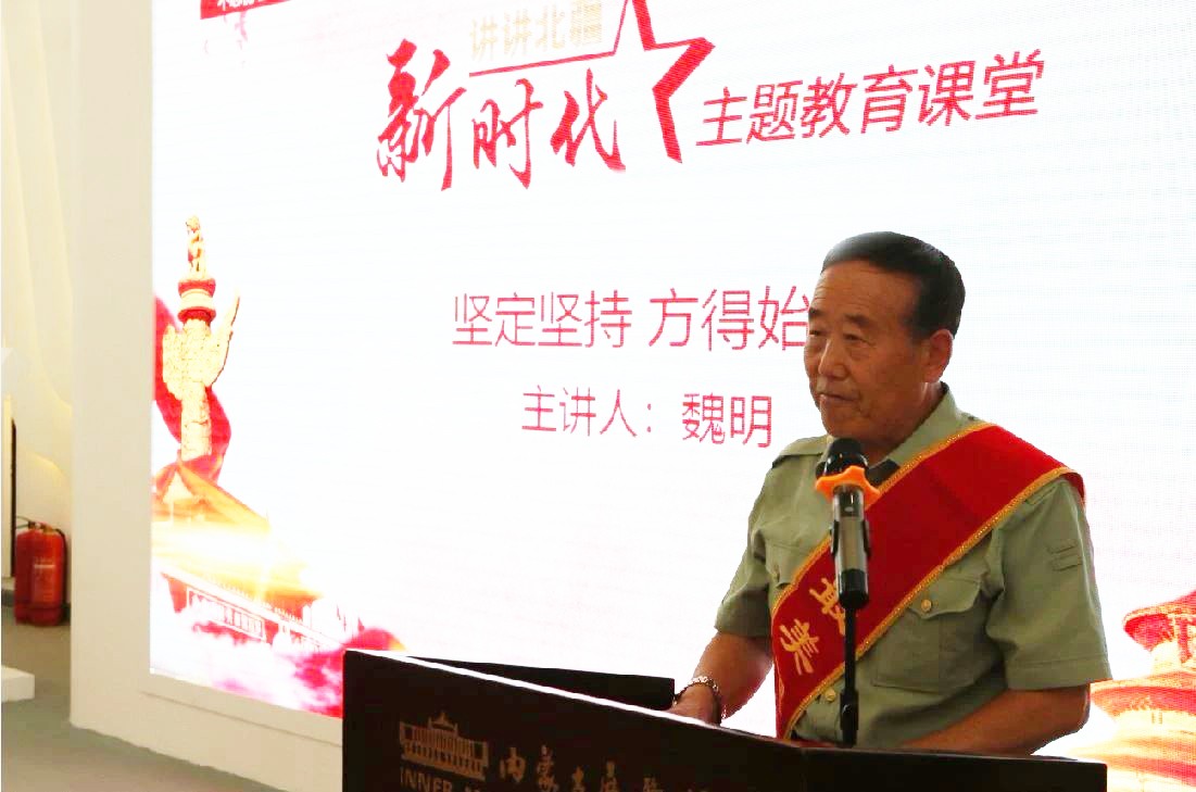 8月23日,内蒙古展览馆举办“讲讲北疆新时代”第十四期活动——主题教育课堂,邀请内蒙古自治区第五届“道德模范”、呼和浩特第一届“最美退役军人”魏明,以《坚定坚持,方得始终》为题,通过讲述自己从军35年、从警10年和退休后的十几年中,始终保持着“正义感、责任感、同情感”的先进和感人事迹,从而号召大家:从我做起,从现在做起,不忘初心,把自己磨砺成一个奉献社会的人。