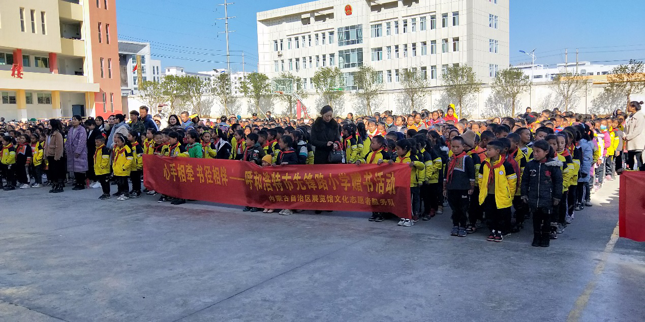 期间,内蒙古展览馆文化志愿服务队代表呼和浩特市先锋路小学和内蒙古工业大学理学院的学生们,向温州商会爱心学校和县图书馆捐赠了1200多册儿童文学、教辅书和文艺书籍,随书还附赠了祝福卡片。
