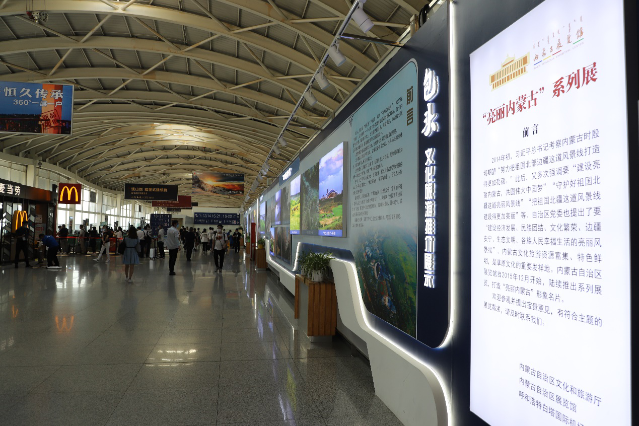 8月23日,由内蒙古自治区文化和旅游厅主办、内蒙古展览馆承办的“亮丽内蒙古”——盟市文旅风情·包头推介展览,在呼和浩特白塔国际机场亮相。展览从“2019包头新十景”、“包头文旅创新景区”、文旅新业态景区、节庆活动、风味美食等5个方面向区内外游客展示了包头文化和旅游、展示了“稀土之都”、“草原钢城”的独特风采。