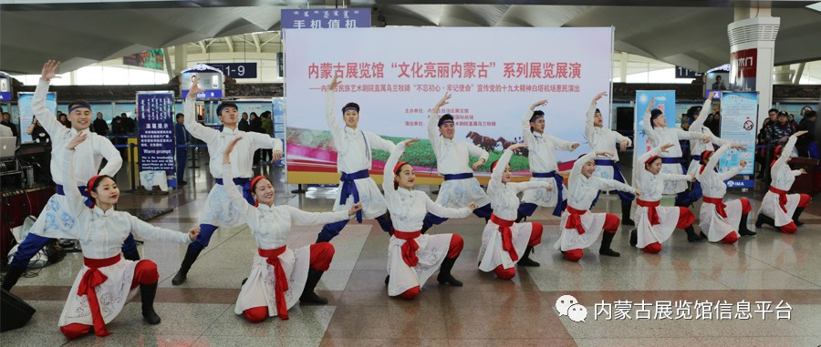 “草原非遗轻骑兵”展演。演出以歌舞为主,多种艺术形式相结合,既有热情奔放的舞蹈,也有悠扬动听的歌曲,二胡独奏《赛马》、民歌《吉祥》《守望相助》、二人台《拜大年》以及乐器合奏等具有浓郁草原文化特色的节目为春运现场送去了更多地暖意。