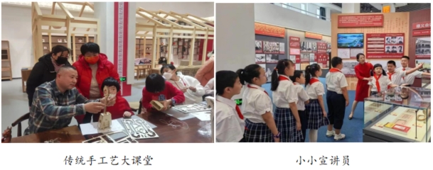 充分发挥党建融合社教活动,依托主题展览开展“思政课堂”,打造宣传阵地优势。围绕党的二十大精神、习近平新时代中国特色社会主义思想、伟大建党精神等,沉浸式开展“讲讲北疆新时代”社会教育活动,推出“展览中的音乐会”,在红色的旋律中传承精神,在新时代奋进中迈进步伐,将主题展览带进学校和社区,用展览场景、展览画面讲好党的故事,落实党建融合社教活动发展新思路。开展“北疆文化”展苑讲堂、“中华文化月月传”、“传统手工艺大课堂”社会教育活动,传承弘扬中华民族优秀传统文化,推动传统工艺传承创新,弘扬北疆文化赓续中华文脉,助推文旅产业发展。深入推进“两个打造”构筑共有精神家园,开展“小小宣讲员”活动,有形有感有效推广普及国家通用语言文字,进一步提升铸牢中华民族共同体意识。