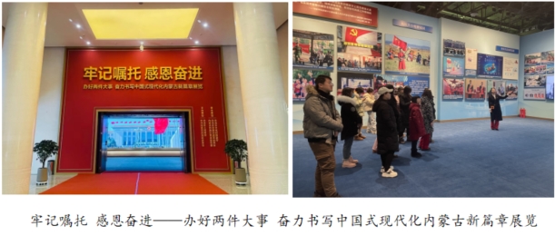 为巩固拓展主题教育成果,坚持宣传党的主张、落实党的声音,紧跟习近平总书记对内蒙古关怀厚爱的足迹,举办“牢记嘱托 感恩奋进——办好两件大事 奋力书写中国式现代化内蒙古新篇章展览”,展示内蒙古自治区党委政府带领全区各族干部群众紧跟总书记奋进新征程、建功新时代的生动实践,吸引了大批党员干部群众前来观展,又一次掀起了红色教育新热潮。自2月8日开展以来,已接待277个团体,7.5万人次。