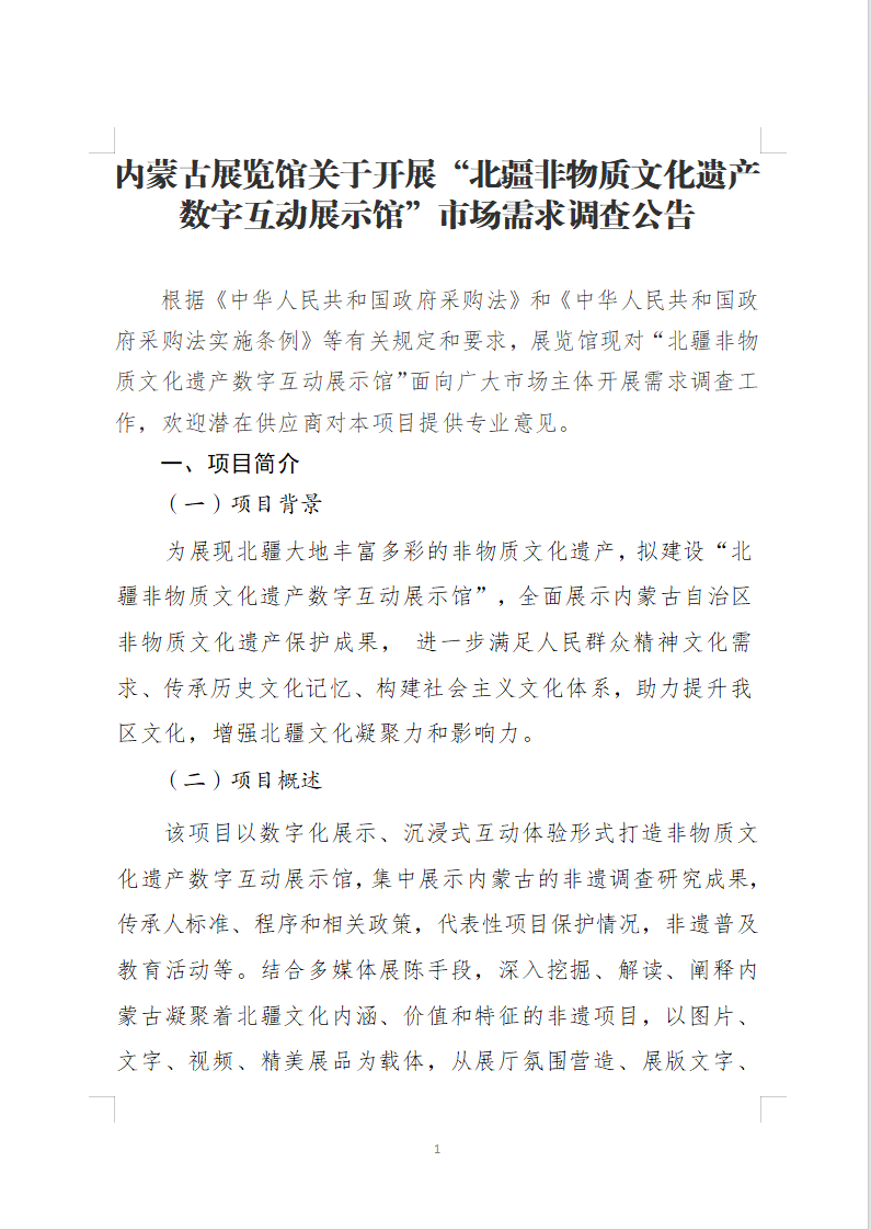 下一篇:内蒙古展览馆关于“蒙古马精神”主题展览 项目市场需求调查公告