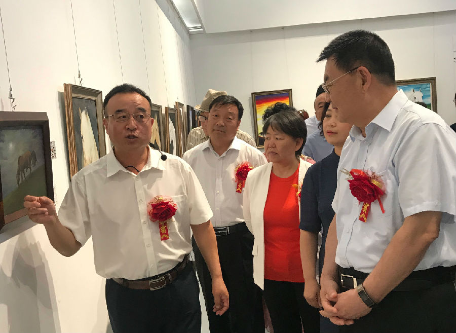 6月30日,“蒙古马美术作品展”在内蒙古展览馆开幕。全国政协人口环境委员会副主任任亚平、内蒙古政协副主席其其格等领导及众多文化名人出席了开幕式。